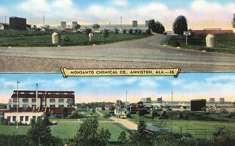 Monsanto Chemical Company, Anniston, Alabama, 1940. Postcard by EC Kropp Company. Monsanto acquired the Swann Chemical Company plant, located just west of Anniston, in 1935. Reproduced from Baptized in PCBs, 60. Courtesy of Ellen Spears.