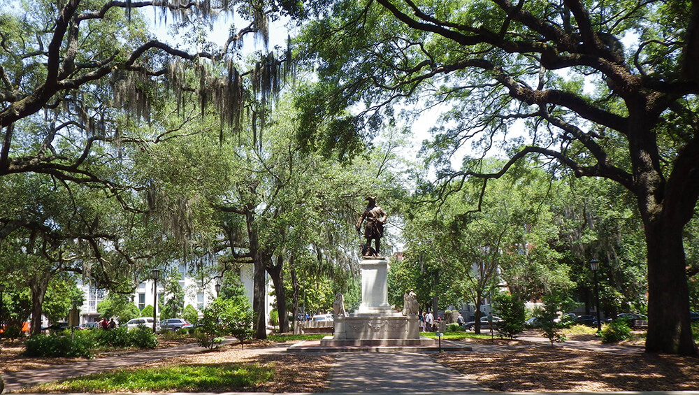Top, General Oglethorpe Statue in Chippewa Square, Savannah, Georgia, May 22, 2014. Photograph by Flickr user BEV Norton. Creative Commons license CC BY-NC-ND 2.0.