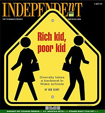 Cover of the Independent Weekly vol. 27, no.3, January 20–27, 2010. Featuring Bob Geary's "Rich kid, poor kid: Diversity takes a backseat in Wake schools."