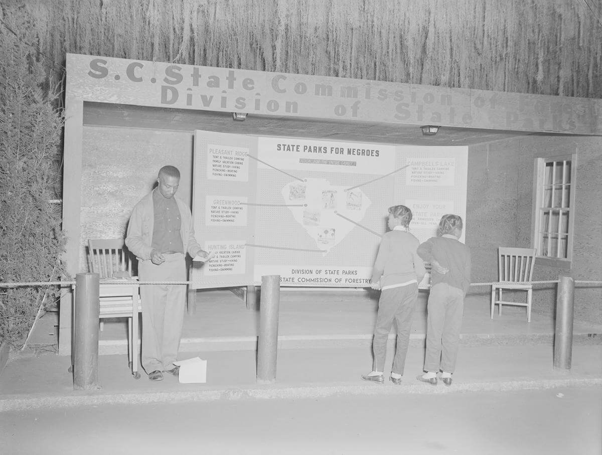 State Parks For Negroes Exhibit, State Fair Grounds, Richland County, South Carolina, 1958. Photograph by unknown creator, South Carolina State Commission of Forestry. Courtesy of Black and white negatives of South Carolina State Parks, 1934–1967 collection, Open Parks Network, Clemson University and National Park Service.
