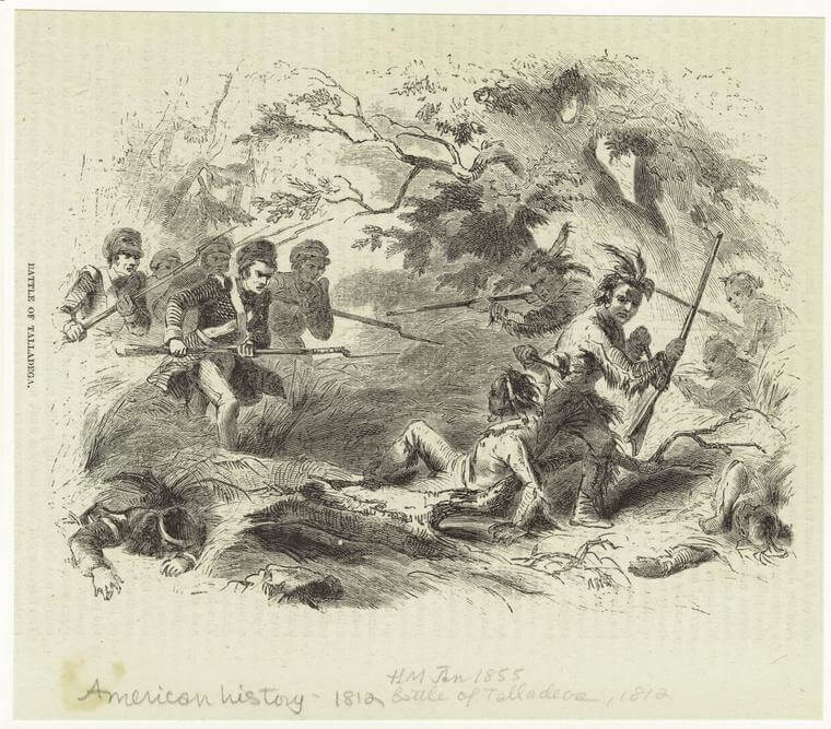 Battle of Talladega, 1855. Engraving by unknown creator. Courtesy of the New York Public Library Art and Picture Collection Division, digitalcollections.nypl.org/items/510d47e0-f6d5-a3d9-e040-e00a18064a99.