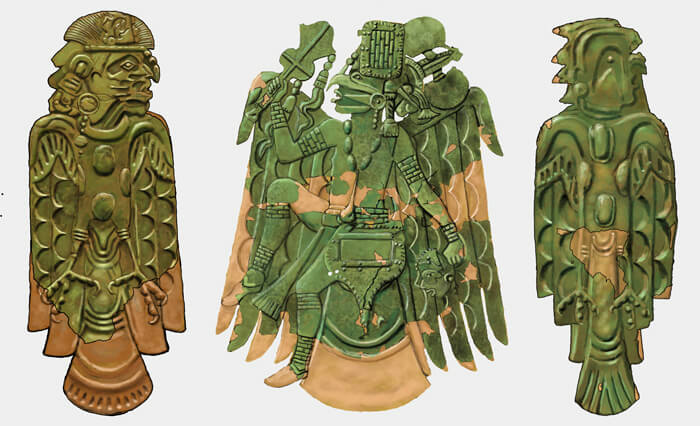 Three examples of Mississippian culture avian themed repoussé copper plates, April 20, 2012. Image by Herb Roe. Courtesy of Wikimedia Commons. Creative Commons license CC BY-SA 3.0.