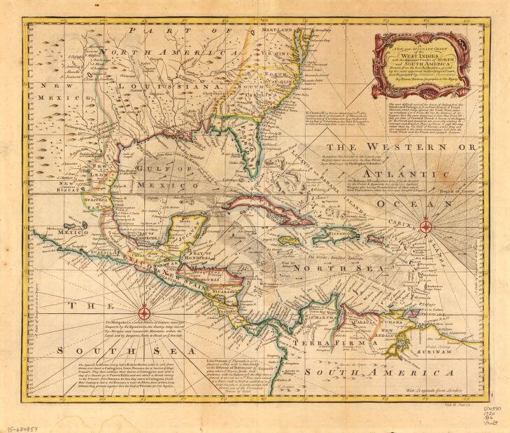 Map identifying Spanish treasure fleets, ca. 1720. Map by Emanuel Bowen. Courtesy of the Library of Congress Geography and Map Division, loc.gov/resource/g4390.ct002233.