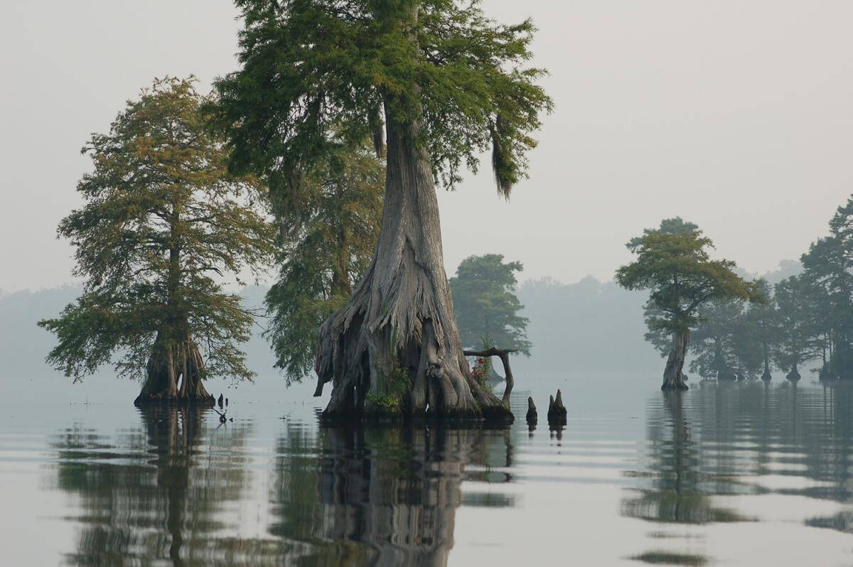Bald cypress in Lake Drummond, Great Dismal Swamp National Wildlife Refuge, Virginia, August 2, 2006. Photograph by Rebecca Wynn, uploaded by Albert Herring. Courtesy of Wikimedia Commons. Creative Commons license CC BY 2.0.