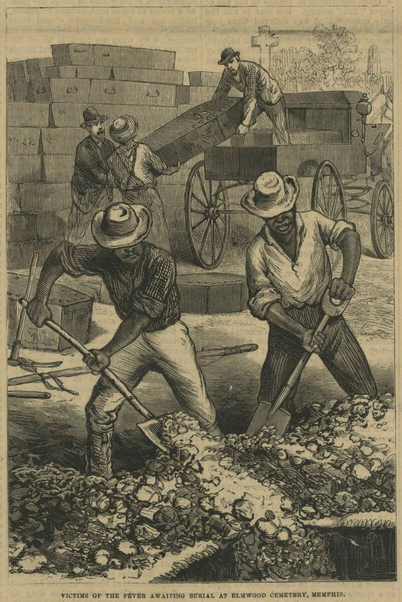 Yellow fever burial, Memphis, Tennessee, September 21, 1878. Illustration by unknown creator, published by Frank Leslie's Illustrated Newspaper. Courtesy of the Illustrations from Harper's Weekly Newspaper and Frank Leslie's Illustrated Newspaper collection, Digital Archive of Memphis Public Libraries.