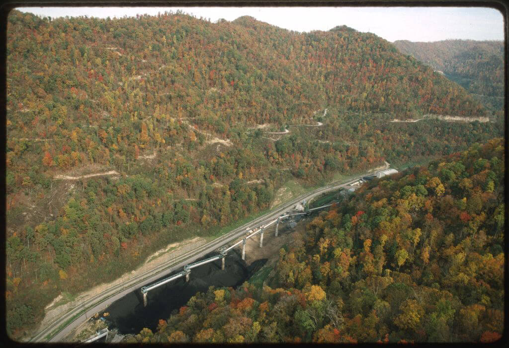 Aerial view of Coal River Valley, following Route 3, West Virginia, October 26, 1955. Photograph by Lyntha Scott Eiler. Courtesy of the Library of Congress American Folklife Center, loc.gov/item/cmns000112.