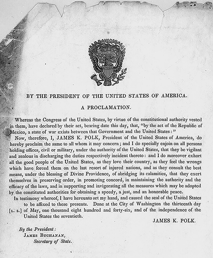 By the President of the United States of America. A proclamation, Washington, D.C., 1846. Proclamation by James K. Polk. Courtesy of the Library of Congress Rare Book and Special Collections Division, loc.gov/resource/rbpe.19800400.