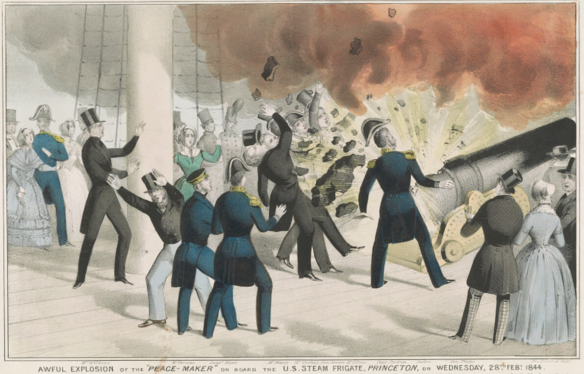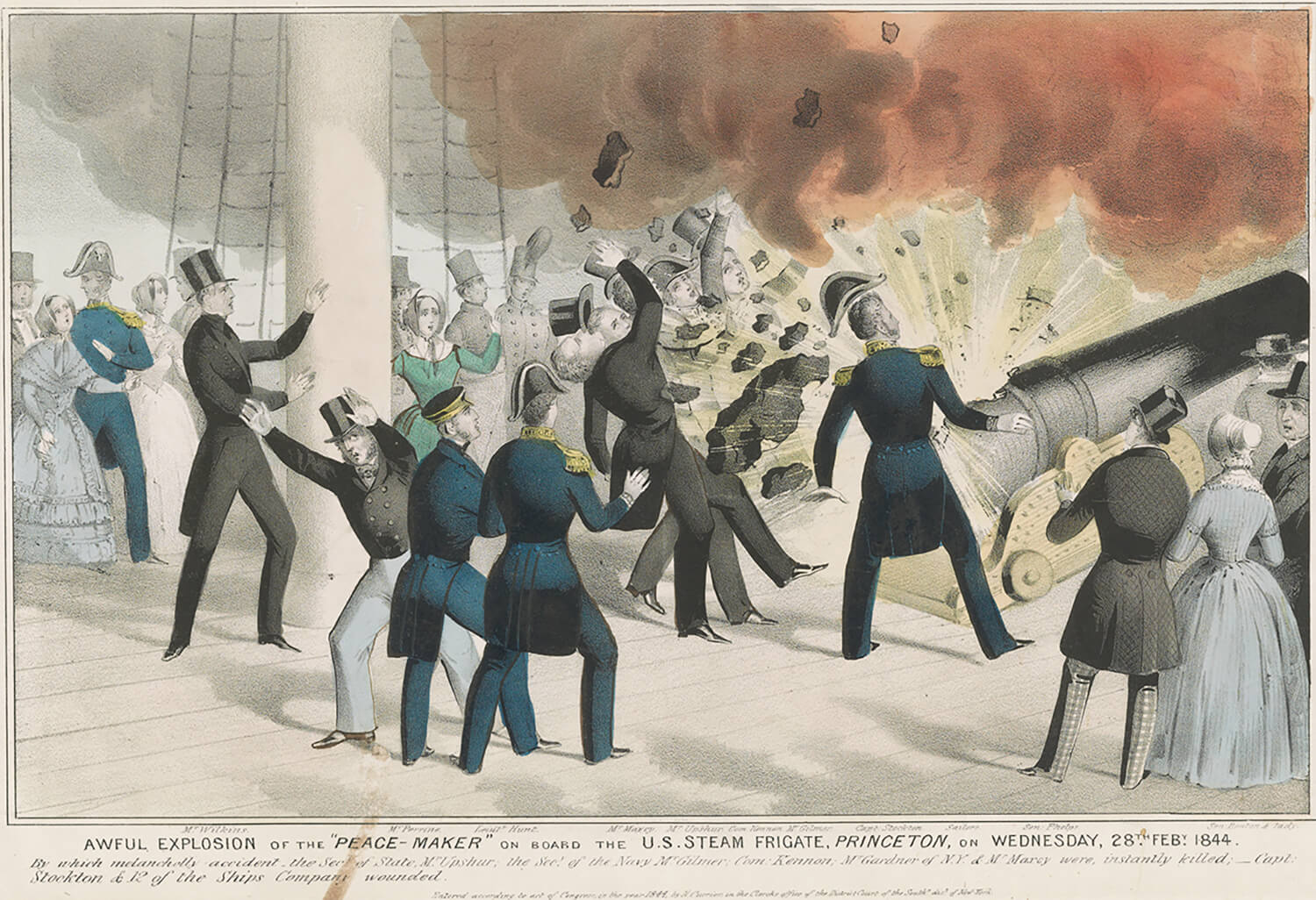 Awful explosion of the "peace-maker" on board the U.S. Steam Frigate, Princeton, on Wednesday 28th Feb 1844, New York, 1844. Lithograph by N. Currier. Courtesy of the Library of Congress Prints and Photographs Division, loc.gov/item/90708862.