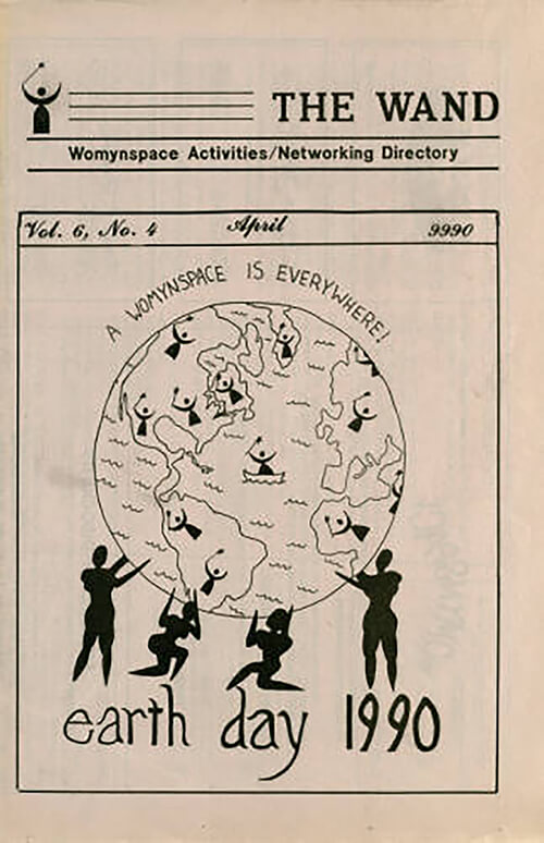 Cover of THE WAND newsletter (Houston, TX: Womynspace Activities/Networking Directory, April, 1990). Courtesy of the University of Houston Libraries.