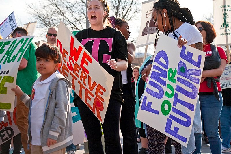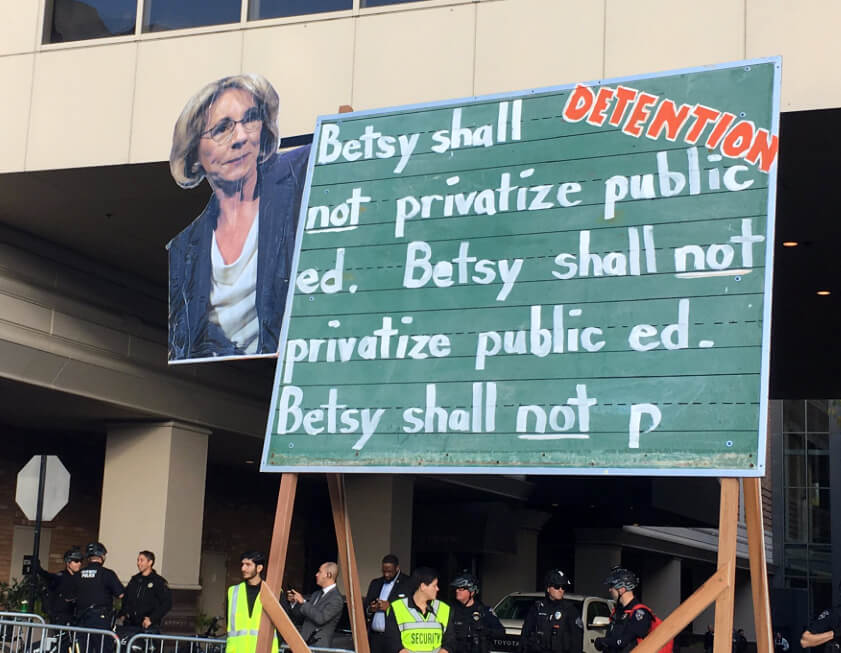 Sign protesting Betsy DeVos at a rally, Bellevue, Washington, October 13, 2017. Photograph by Flickr user Backbone Campaign. Creative Commons license CC BY 2.0.