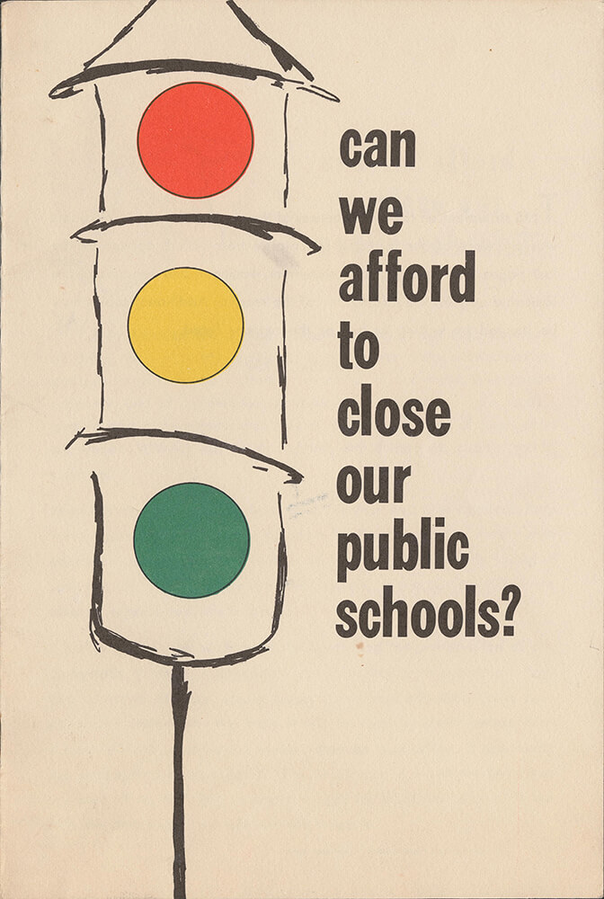 Cover of Can We Afford to Close Our Public Schools?, December 1959. Booklet by unknown creator. Courtesy of the Beverly Long Papers, Stuart A. Rose Manuscript, Archives, and Rare Book Library, Emory University. View full booklet.