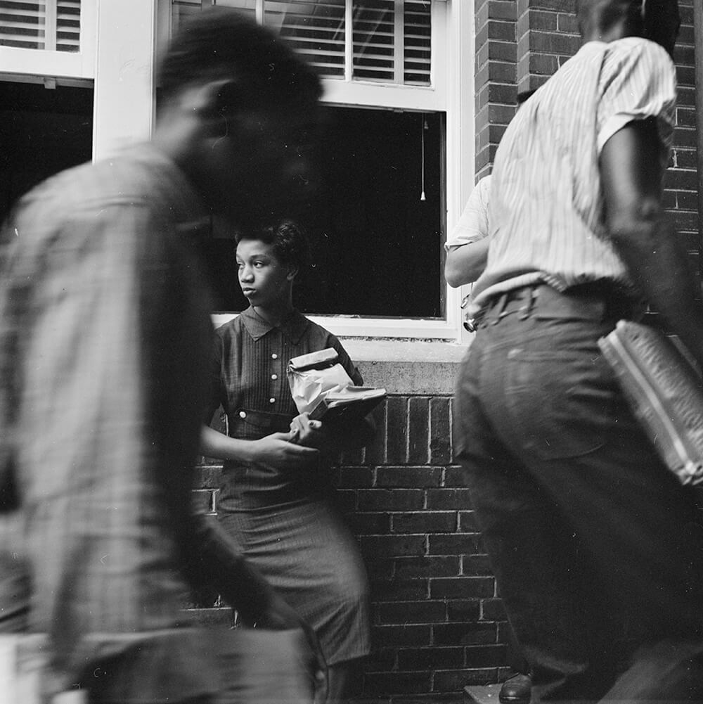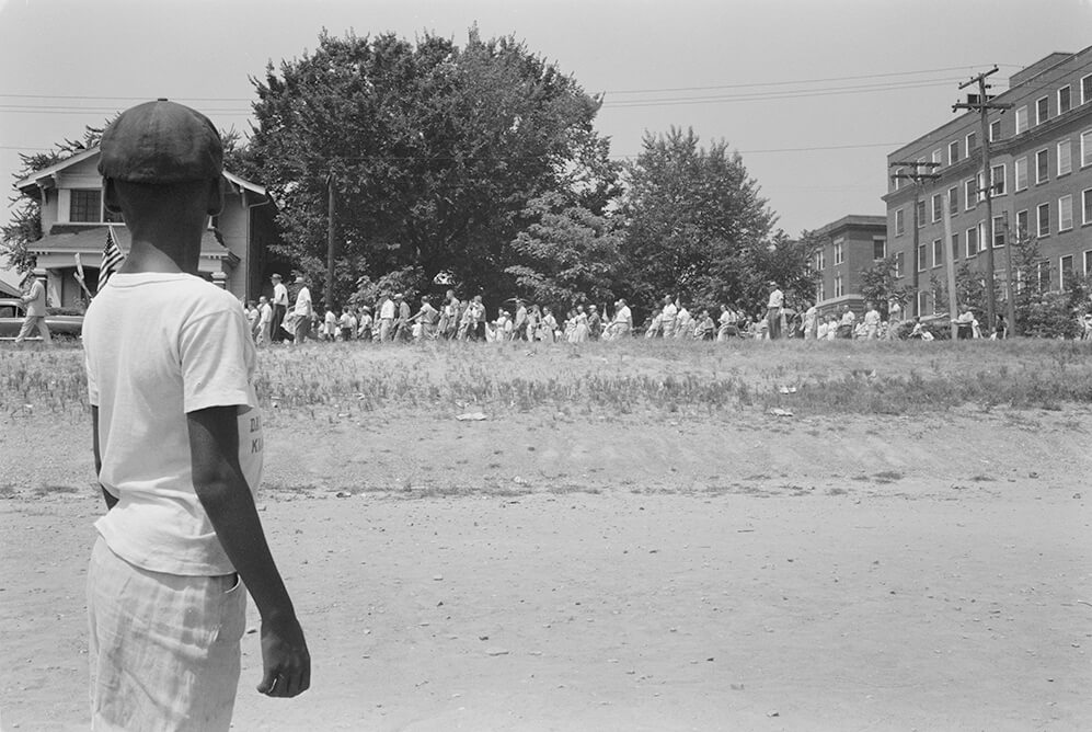 Child watching a march protesting the admission of "Little Rock Nine" to Central High School, Little Rock, Arkansas, August 20, 1959. Photograph by John T. Bledsoe. Courtesy of the Library of Congress Prints and Photographs Division, loc.gov/item/2003654358.