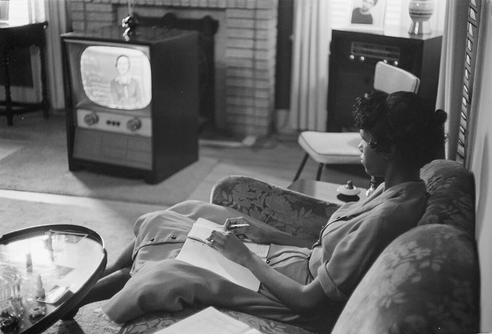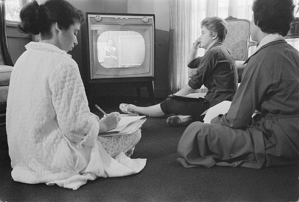 Top, middle, bottom, Students being educated via television during the period that the Little Rock schools were closed to avoid desegregation, Little Rock, Arkansas, September 1958. Photographs by Thomas J. O'Halloran. Courtesy of the Library of Congress Prints and Photographs Division, loc.gov/item/2003654389, loc.gov/item/2003654356, and loc.gov/item/2003654390.
