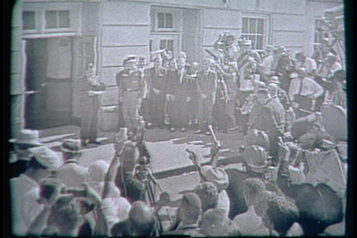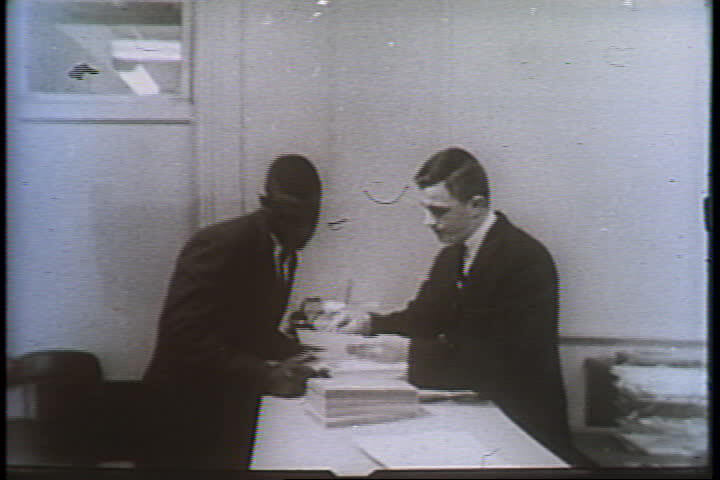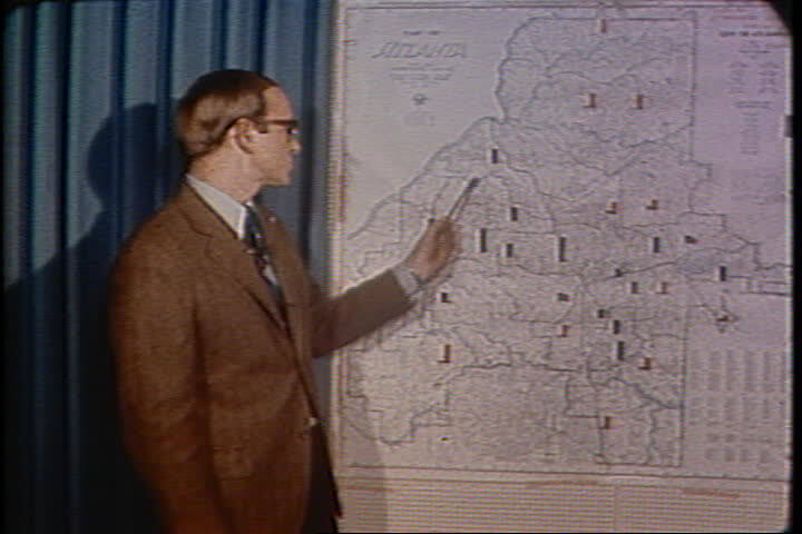 WSB-TV newsfilm clip of Alabama governor George C. Wallace standing in the doorway to prevent registration of African American students at the University of Alabama, Tuscaloosa, Alabama, June 11, 1963. Video still by WSB-TV Atlanta. Courtesy of the Civil Rights Digital Library, Walter J. Brown Media Archives, University of Georgia. View full newsfilm clip.