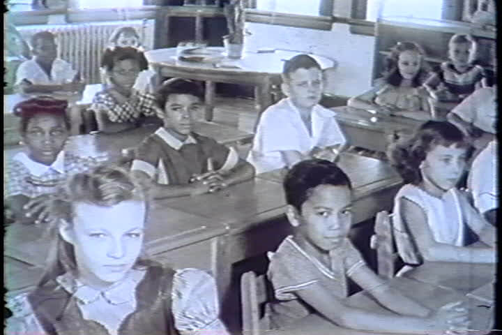 WSB-TV newsfilm clip of an interracial classroom, New Orleans, Louisiana, December 1, 1960. Video still by WSB-TV Atlanta. Courtesy of the Civil Rights Digital Library, Walter J. Brown Media Archives, University of Georgia. View full newsfilm clip.