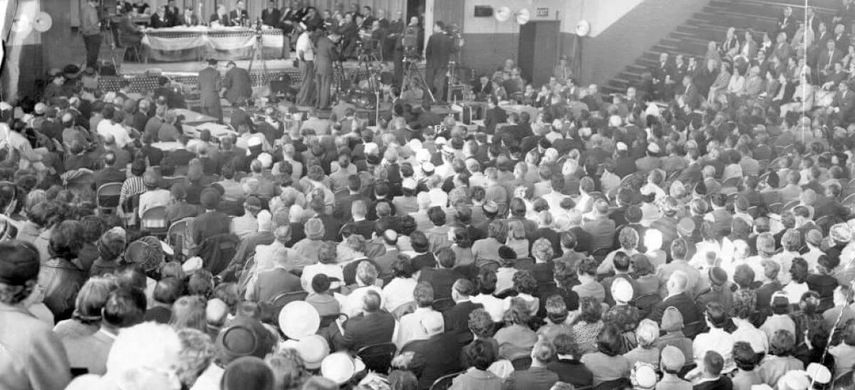 James "Big Jim" Folsom while campaigning for governor, Mobile, Alabama, June 6, 1946. Photograph by unknown creator. Originally published in the Mobile Press-Register. Courtesy of the Alabama Media Group Collection, Alabama Department of Archives and History.