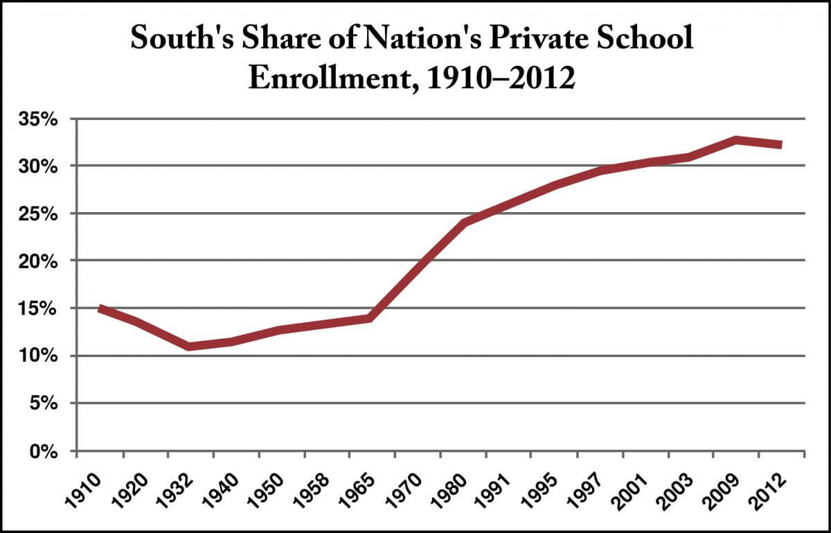 From 1940 to 1950, private school enrollment in the South rose by more than 125,000 students—a 43-percent increase, and, for the first time since private enrollment numbers were documented, the rate of growth doubled that of the rest of the nation.