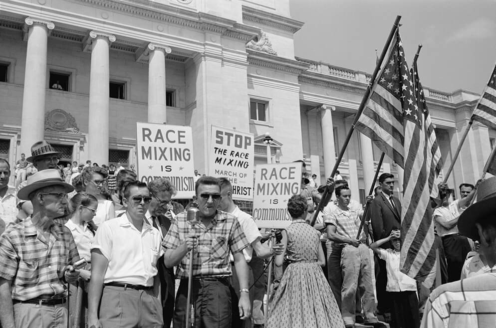 But George Wallace was only one type of segregationist—and hardly a representative figure for those more successful over time in frustrating and blocking school desegregation. Segregationists with other styles and backgrounds built the more lasting terms, tools, and tactics that obstructed the Supreme Court's unanimous 1954 opinion in Brown v. Board of Education16Brown v. Board of Education of Topeka, 347 U.S. 483 (1954). outlawing segregated public education. This wider cast of white supremacists competed fiercely in shaping how and where segregated schools could be preserved. When political self-interest and racial ideology aligned, they occasionally cooperated. At times they shared a vocabulary against Brown, depicted as a federal edict to force the South to create "mixed schools," never to create equitable, desegregated or integrated schools.17Spearman and Meyer, Racial Crisis and the Press, 19, 25, 46–48, 52. Meyer explains how "mix" was a "scare word." Justin Driver, "Supremacies and the Southern Manifesto," Texas Law Review 92 (2014): 1082, https://chicagounbound.uchicago.edu/journal_articles/4043/.