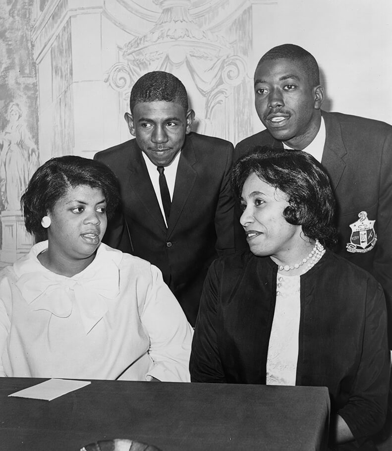 Autherine Lucy and her lawyers, Thurgood Marshall, Arthur Shores, and Constance Baker Motley, walking past the federal courthouse on the day a judge ordered her readmission to the University of Alabama, Birmingham, Alabama, February 29, 1956. Photograph by Norman Dean. Originally published in the Birmingham News. Courtesy of the Alabama Media Group Collection, Alabama Department of Archives and History.
