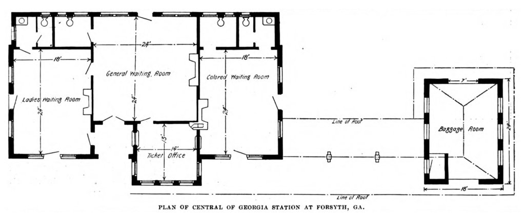 Plan of Central of Georgia Station at Forsyth, Georgia, 1900. Drawing by unknown creator. Originally published in The Railway Age (July 6, 1900). Courtesy of HathiTrust and New York Public Library.