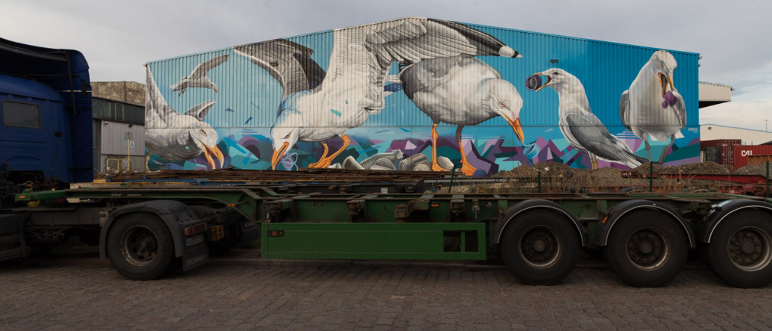Mural of seagulls and plastics by artist Sabotaje al Montaje at a port in Hamburg, Germany, August 8, 2021. Photograph by and courtesy of Flickr user michael_hamburg69.Recommended Resources